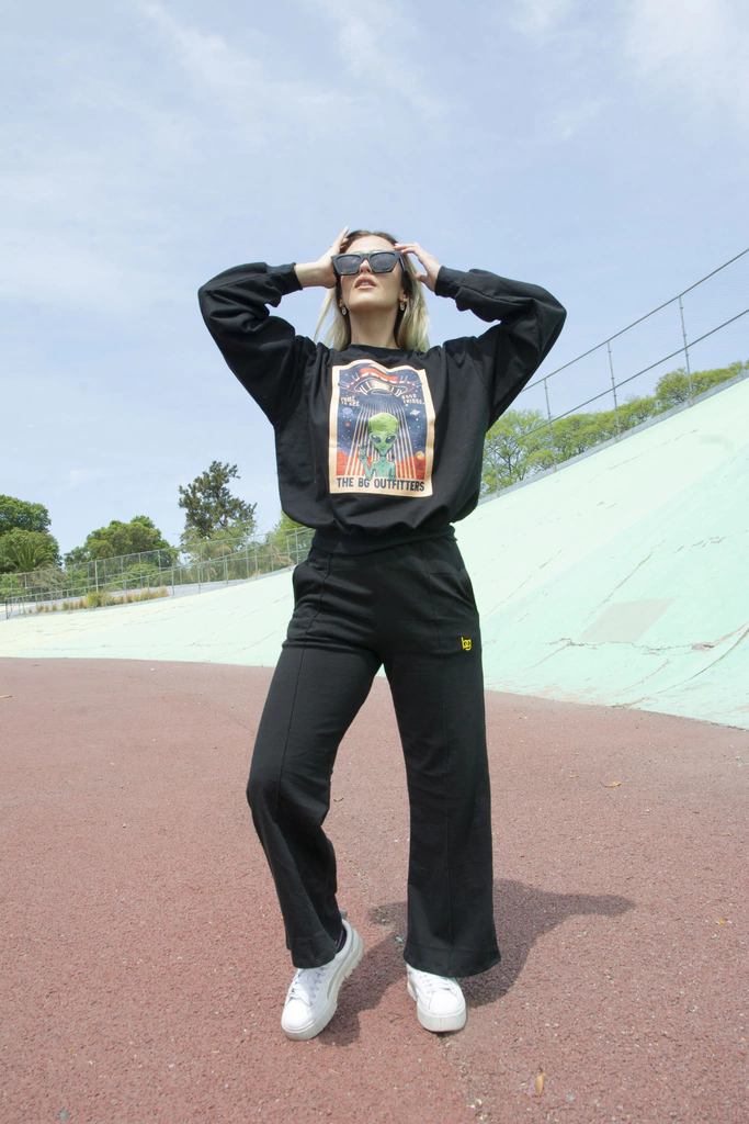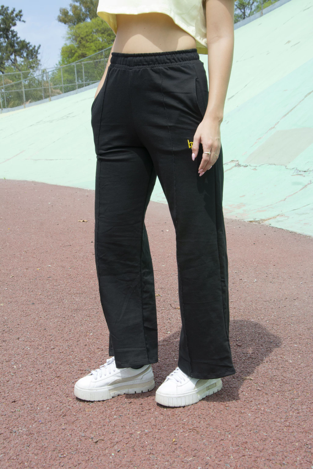 Pantalon de rustico liviano ancho, tipo wide leg.
